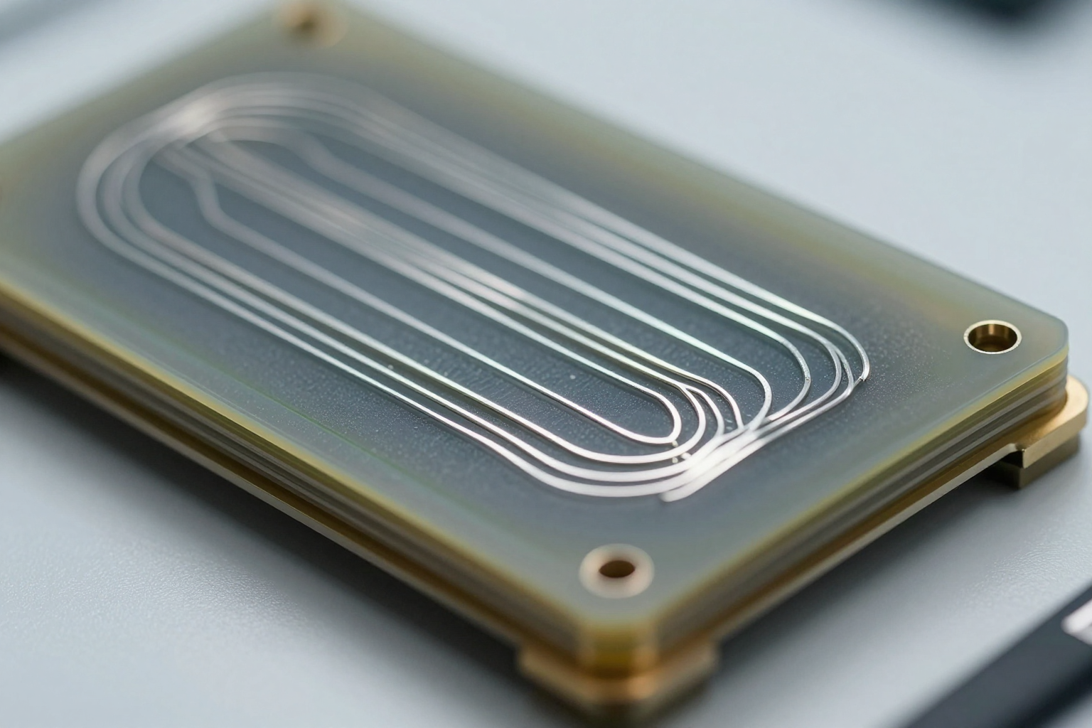 This close-up sample highlights how printed trace geometry and substrate build can differ from a standard copper PCB, which is why conductivity and durability still need early review.