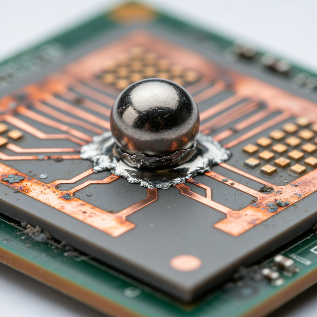 - Solder balls (usually tin-lead or lead-free alloys like SAC305)