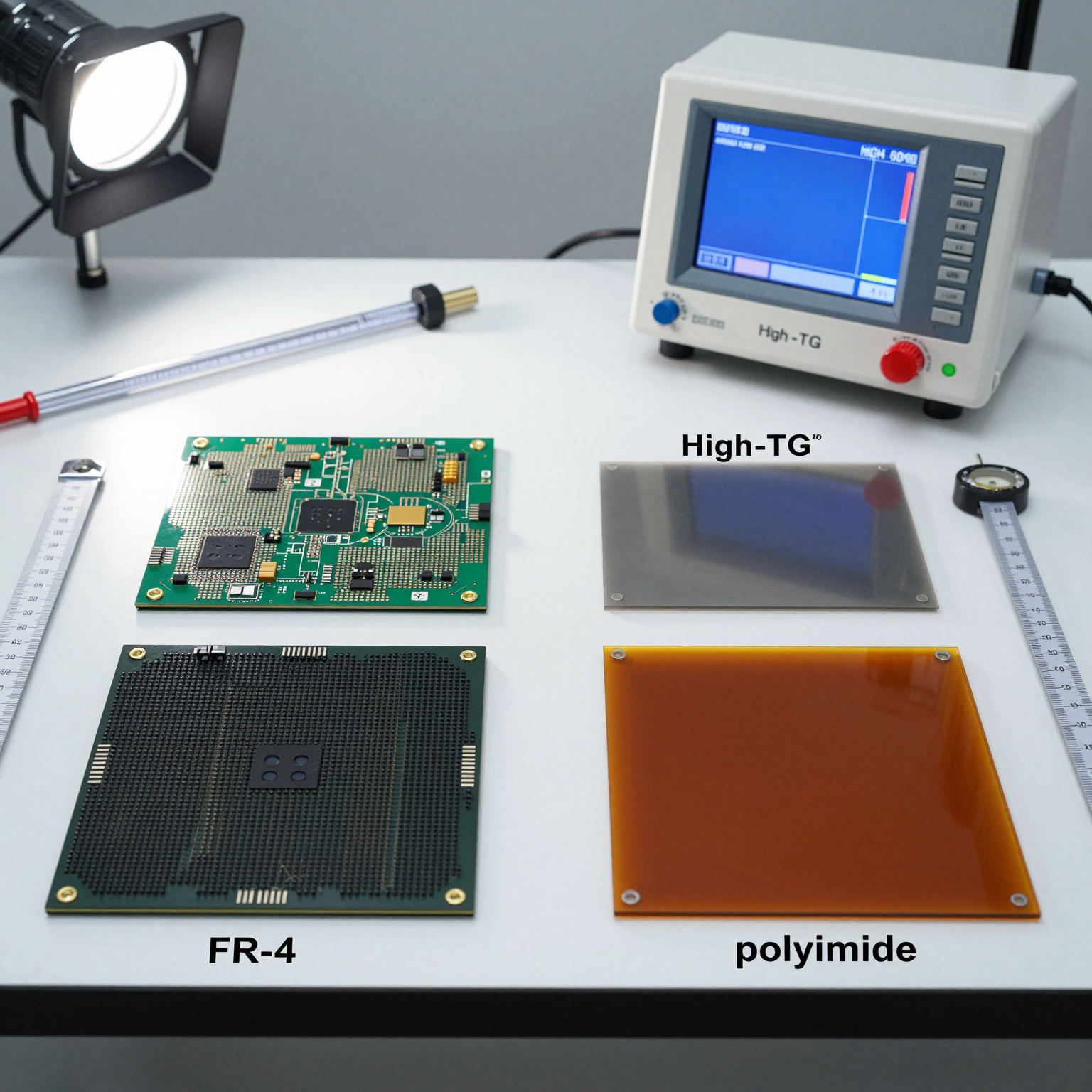 - Polyimide: Used in flexible PCBs (flex PCBs) and high-temperature applications.